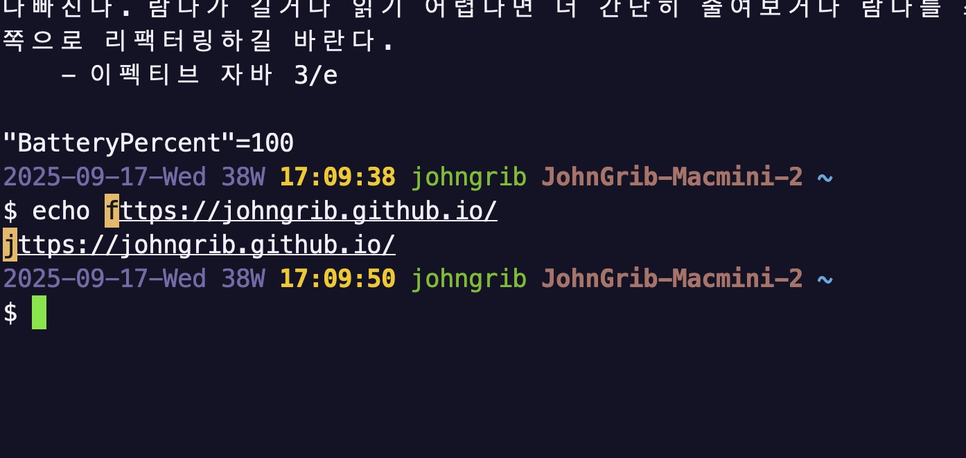 - 최근의 iTerm 에서는 http(s)?에 링크를 걸어주는 것은 기본 기능이기도 하며, 간단한 설정으로 지라 티켓번호 등에 jira 사이트와 연결되는 링크를 거는 것도 가능하다.